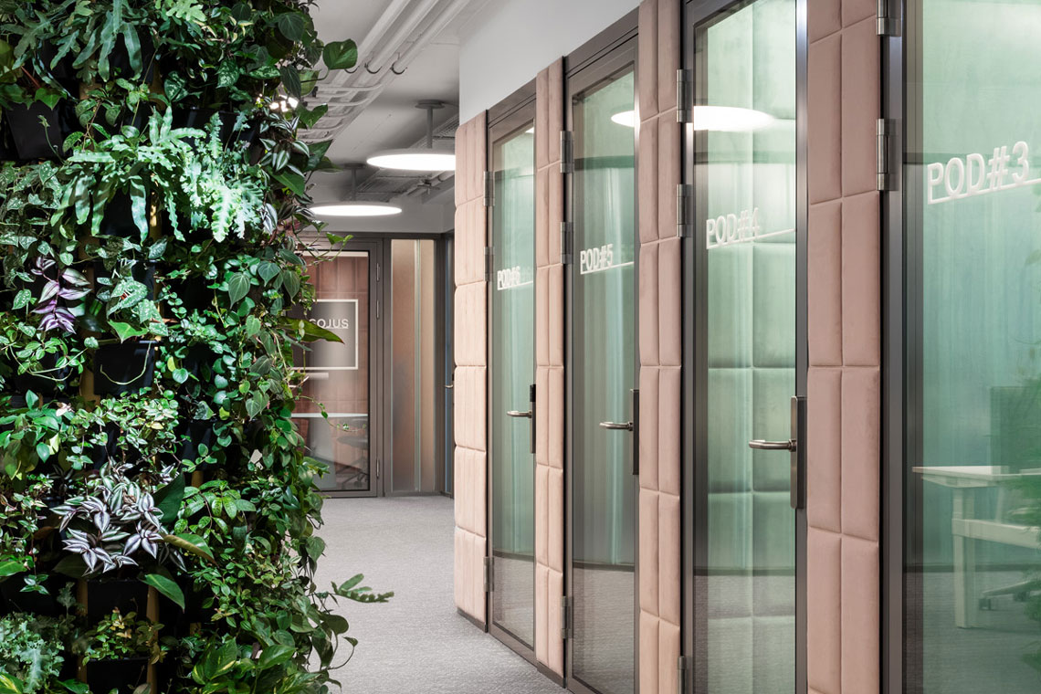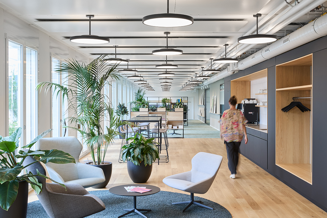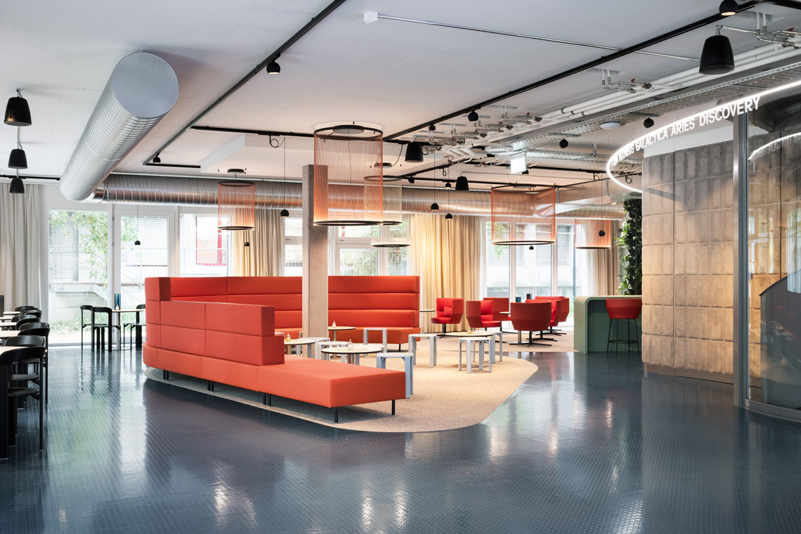 Changierende Elemente mit erstaunlichem Farbspektrum für eine hochwertige und flexible Arbeitswelt am Aeschengraben, Basel.